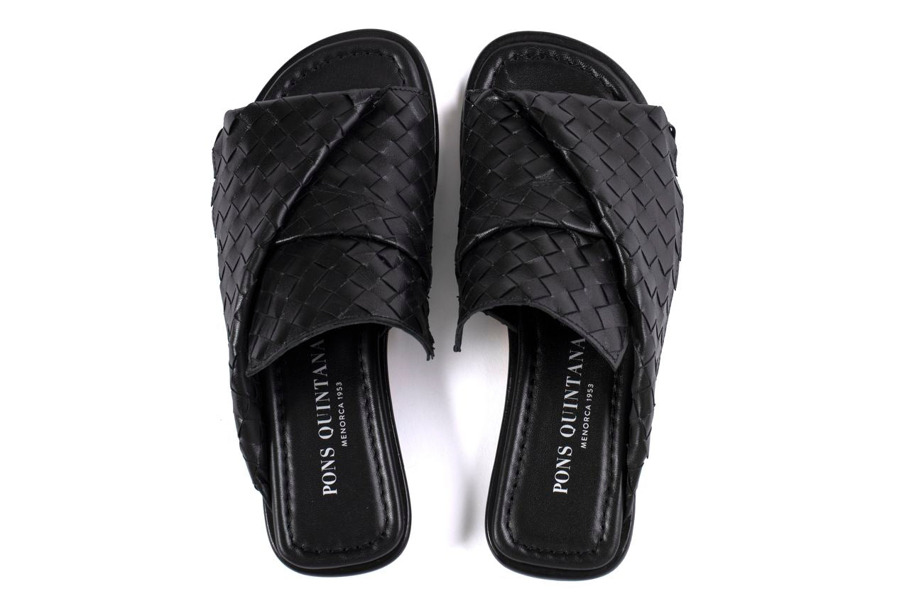 Sandàlia plana Tina de pell trenada a mà color negre. Pala creuada. Pis de cuir. Alçada 2,5 cm. PONS QUINTANA