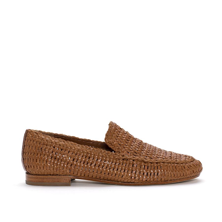 BARI moccasin made in toffe color hand-braided leather. Round toe finish.