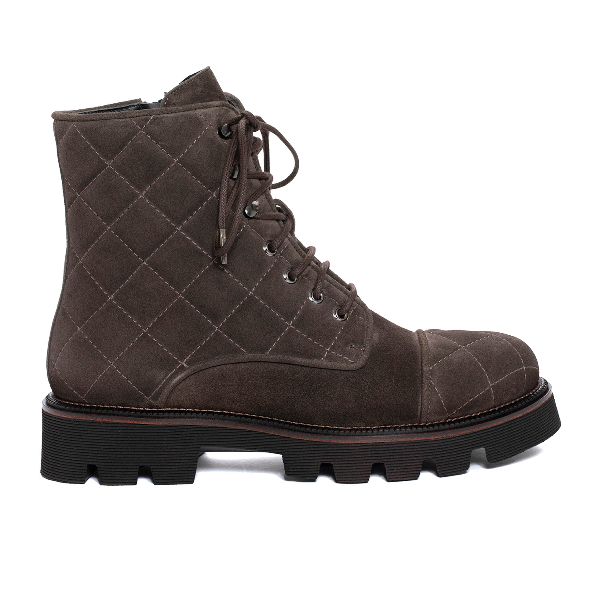 Botín de plataforma JENNY confeccionado en piel velour color sasso. Acabado en punta redonda. Cierre mediante cremallera interna lateral y cordones. Plataforma de goma antideslizante con tecnología Light Weight. Altura 3 cm. JENNY y su icónico piso track, un imprescindible que no puede faltar. PONS QUINTANA