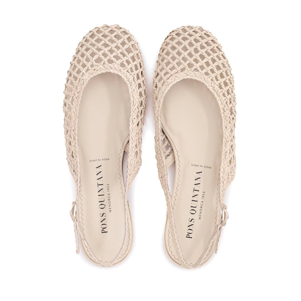 Ballerinas Ottawa en piel wet trenzada a mano color salinas.Cierre mediante hebilla en el tobillo. Su construcción abierta permite una excelente ventilación, ideal para los días cálidos. Tacón de 2,5 cm a tono. Suela de cuero. PONS QUINTANA