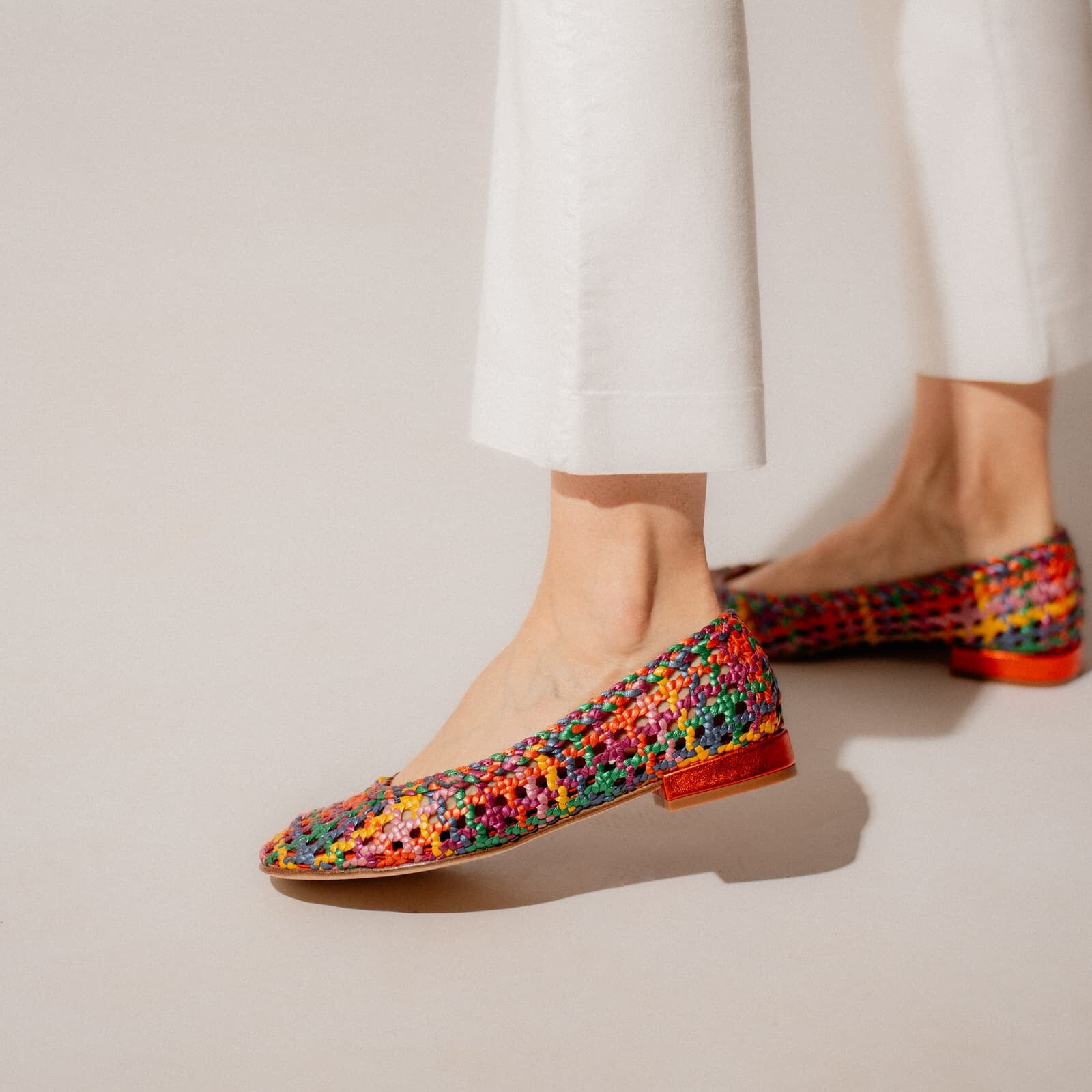 Sandalia de plataforma FORLI en piel trenzada a mano en color mela. Acabado en punta redonda. Plataforma trenzada a tono. Cierre mediante hebilla en el tobillo. Altura de 4,5 cm. PONS QUINTANA