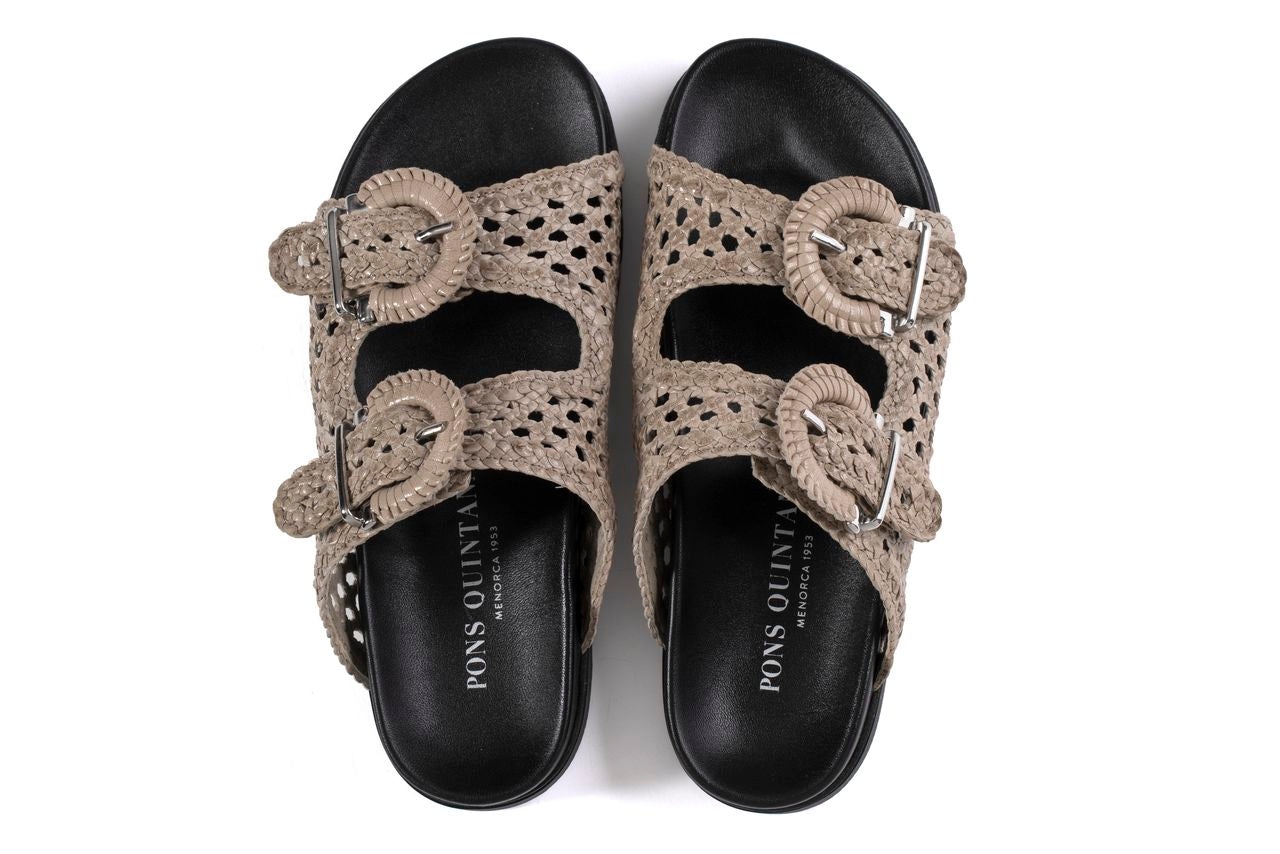 Sandalia estilo fussbett Caiman confeccionada en piel trenzada a mano color fumo. Doble tira de piel con hebillas metálicas para un mayor ajuste. Piso ortopédico de goma. Altura de 3 cm. PONS QUINTANA
