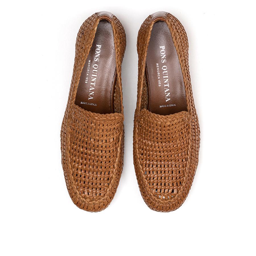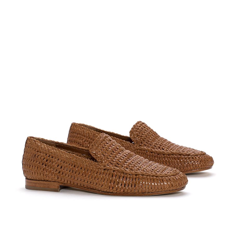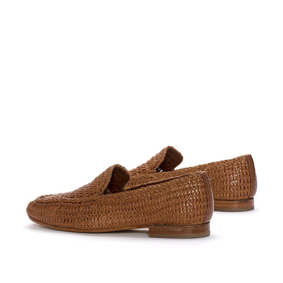 Mocasín BARI confeccionado en piel trenzada a mano color Toffe. Acabado en punta semi redonda.