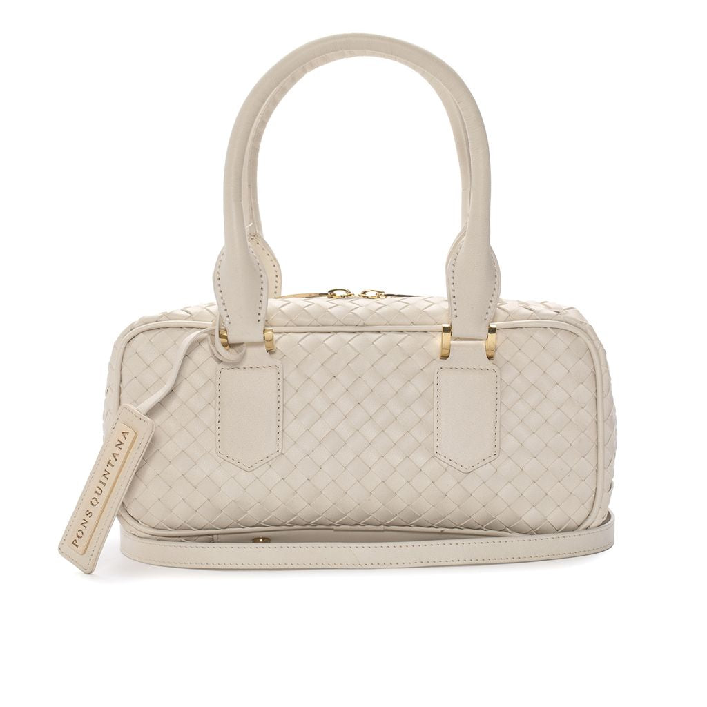 Bolso de mano realizado en piel wet trenzada a mano color salinas. Forro textil. Bolsillo interior con cremallera. Asa a tono. Tira de piel a tono ext raible. Detalle de chapa con el logo de la marca. PONS QUINTANA